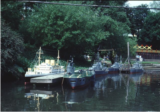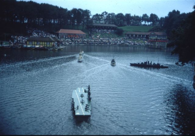 When the display started all the vessels were powered by men in the boats, electricity was added to some in later years. Although some of the smaller boats are steered by electricity and electricity is certainly used to power the aircraft, most of the boats in the Park, even today, are powered by Scarborough Borough Council employees! Again these are the only display boats powered my manpower.